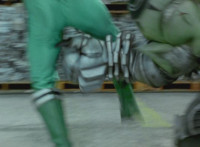 Red falls and rolls, Blue tries and fails to hit Shorty, getting sparkily bashed away, same goes for Green, who gets knocked off his feet. |