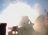 Cuts shot 12 before second firing; cuts shot of more firing between shots 13 & 14. |