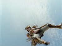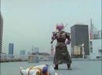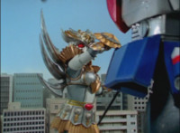 Cuts follow-ups of Robot jumpkicking Megazord in the face. |