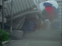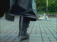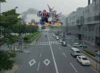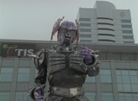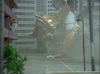 Cuts shot 1 before shot lingers; cuts follow-up of Megazord's feet rushing. |