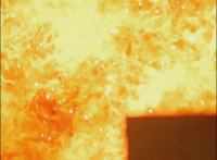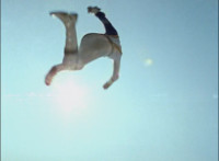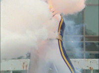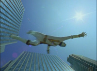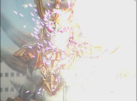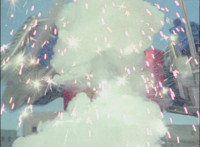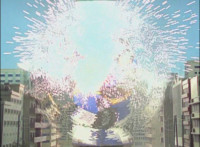 Cuts before she fires boob missiles forth; cuts follow-ups of buildings exploding. |