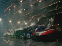 In the Zord hangar, the Omegamax Cycle speeds forth. |
