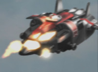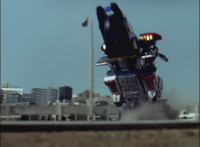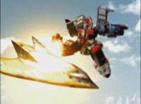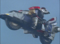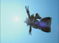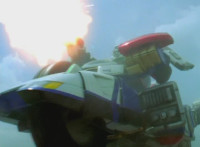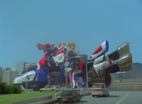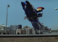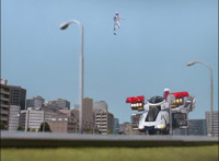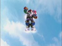 Omegamax Megazord in Semi-Cycle mode launches off the ground. |