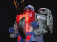 Fades in from white; shots 1-4 are textless, unlike source; cuts follow-ups of Cyclops Robot being bashed again. |