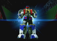 Delta Squad Megazord leaps the Omegamax Cycle into the air. A new helmet lands atop the Megazord, as both the Omegamax Cycle and the Delta Squad Megazord come together to form the Deltamax Megazord. |