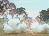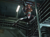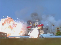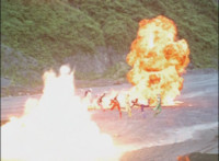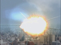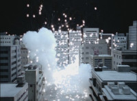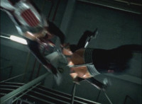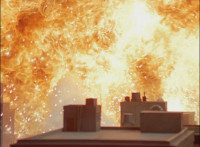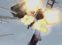 Cuts shot of Robot falling between shots 1 & 2; cuts shot 5 before explosions erupt in front of Robot. |