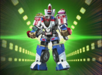 Omegamax Cycle transforms into the Omegamax Megazord. |