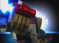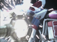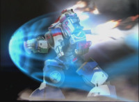 Green is flipped over onto his back. Silverhead blocks Red, sparkily slashes Omega, blocks Blue, sparkily slashes Red, then does the same to Blue. Red readies his Blasters and fires upon Silverhead, who blocks the blasts, before leaping up and slashing at Red, but missing a few times, then blocking Omega's kick. |