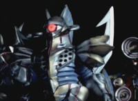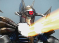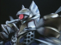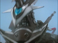 One-Eye rushes forth, Deltamax Megazord doing the same, the monster passing under the Megazord's missed punch. Deltamax throws another punch, sparkily striking One-Eye. |