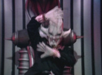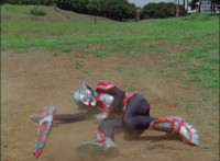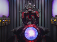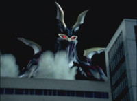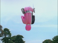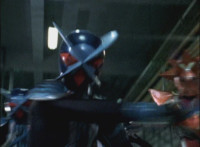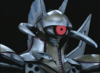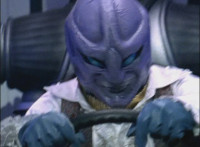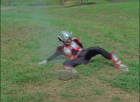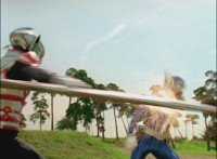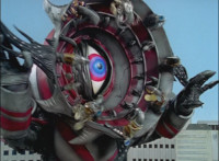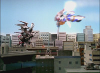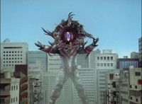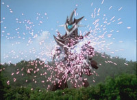 The unnamed alien apparently called "Amoeba" in a Sentai guidebook swirls into the air. |
