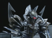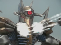 Amoeba reacts, zoom out as he remains in his Robot, facing the two Megazords. Omegamax readies its arm, then walks forth. |