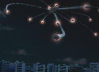 SWAT Flyer 1 fires forth, joined by the others in firing upon the approaching bolts, bursting them as they fly straight up. The remaining laserbolts circle around and heatsink upon the departing SWAT Flyers. |