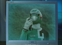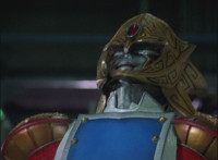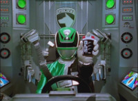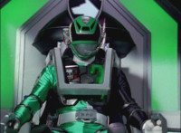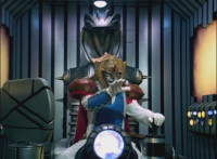 Deltamax Megazord bursts, the six Rangers within are jolted, and the Megazord topples over. The Cyclops Robot reverts back to normal, facing the downed Megazord. Green speaks. |