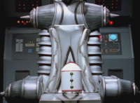 Amoeba swirls into a jar on a seat in the cockpit of a giant Robot, closing the lid, before all of the lights on the control consoles light up. |
