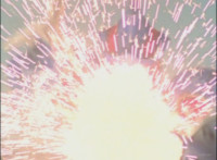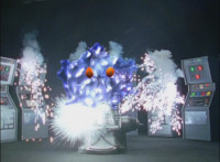 Amoeba's Robot sparks and bursts, even its cockpit sparking, until Amoeba himself explodes. |