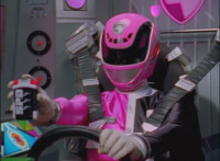 Silverhead's Robot fires its shield cannon forth, exploding below Deltamax Megazord as it leaps straight up into the air, then drops down and lands a sparkily punch into the Robot, before throwing another, and finally knocking it down with an uppercut. Deltamax stands facing the downed Robot, as Pink holds her Delta Morpher forth. Silverhead reacts, as Pink talks some more with Morpher held outward, until she opens it and it flashes. |