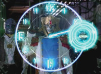 Recycled, per source; cuts follow-up of Robot recovering, then the clockface appearing over Silverhead, then the Megazord's display flashing. |