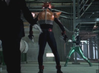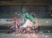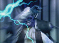 Silverhead falls, rolls, recovers, strikes at Pink but keeps missing, before Pink kicks, then hadouken-move hits him. Silverhead staggers back, but slashes forth again, Pink flipping over his rifle. |
