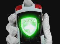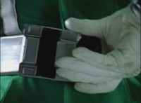 Green holds his Delta Morpher forth, opening it as it flashes. |