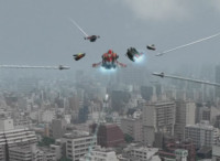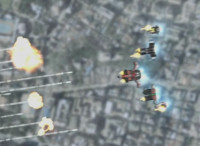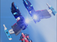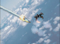 The five SWAT Flyers fly at one another as they're chased by laserbolts. |