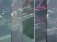 Pushed up from source position; cuts before Pink fans herself then Yellow's cockpit slides into frame and they exchange gestures. |