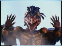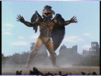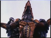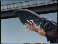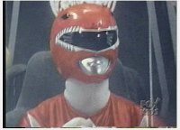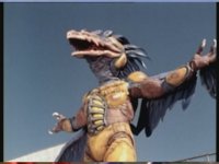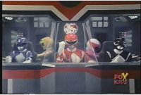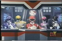 In Megazord cockpit, the five Rangers shield their eyes against seeing their own reflection... err, seeing their impending pecking? |