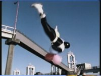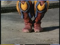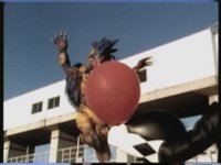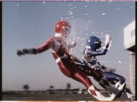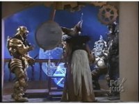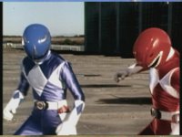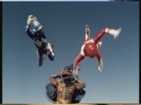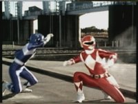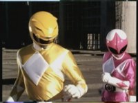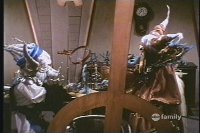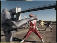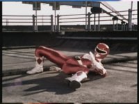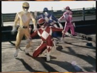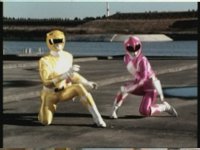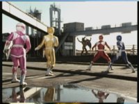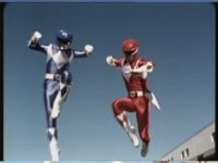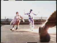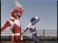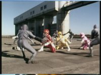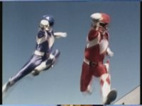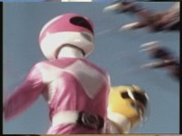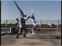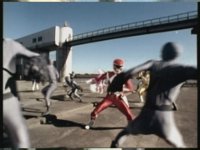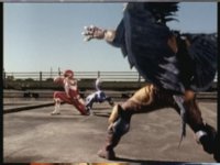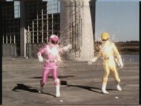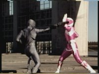 Pink roundhouses Ballhand away, then blocks Bladehand's strike, knocks blade up, then gut punches it. Sudden pan right to Yellow, doing backflips between two lines of Putties, dazing them in the process. |