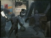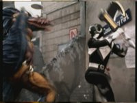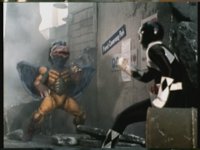 Black rushes into debris & smoke strewn alley, as a gang of Putties approaches from the other end. He ducks under Bladehand, kicks into a regular, then smacks down Ballhand before smacking it back. |