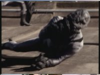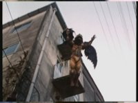 Zoom in as Peckster leaps off the side of a window ledge and falls into alley. |