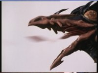 Close on Peckster motioning hands to beak, then out to side as shot zooms into his opening maw. |