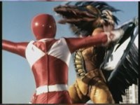 Zoom in on cockpit as Red Ranger raises fist up, then forth, then grips control. |