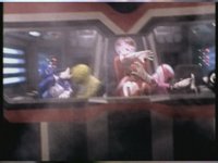 Megazord cockpit gets shook up, jerking the Rangers about. |
