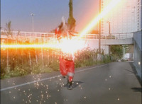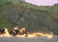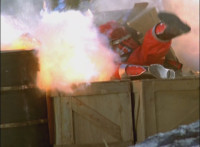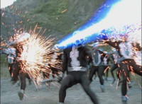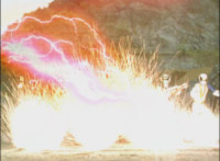 Crackling and gleaming effects added; cuts before explosion erupts behind Rangers. |
