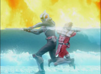 Recycled, cuts short, per source; US replaces surrounding Shadow vs Icthior sequence so Makoto doesn't feel left out. |