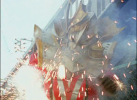 Cuts follow-up close-up of Megazord. |