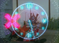 A clockface appears over Icthior, who remains on the ground, when suddenly Shadow's Morpher flashes with a red X. |