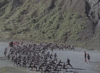 Pan left from Icthior to a cloud of bats approaching. |