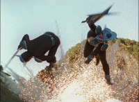 Trims start to remove him roundhouse kicking Green in the head; shot 3 is recycled but first time in context. |