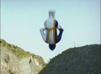 Sharp zoom out from Shadow in the cockpit as all six other Rangers salute. |