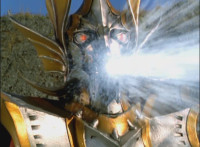 Delta Command Megazord fires forth a solid beam of golden energy from its chestplates. |