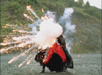 Cuts follow-up explosion sending Krybots flying. |