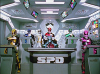 Red SPD transforms into SWAT Mode, soon joined by his teammates. |