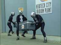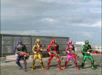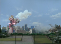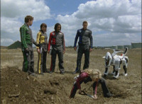 The Rangers use the Delta Squad Megazord for the first time, destroying the Drill Robot. |