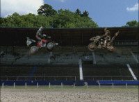 Shadow, on his Delta ATV, takes on Gruumm, on his cycle. |