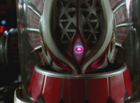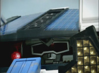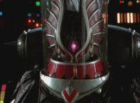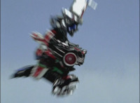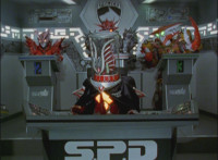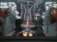 In the Command cockpit, Broodwing talks and gestures, when suddenly the lights in the place go out. Delta Command Megazord's chest plates cease charging. |