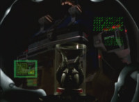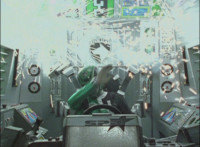Trims shot 2; cuts follow-ups of Broodwing flipping switches on console and getting numbers and sitting back. |