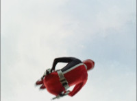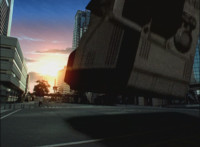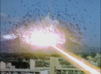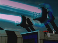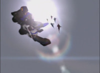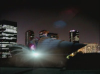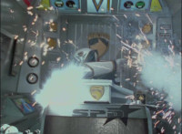 Recycled, per source; Transitions in; cuts follow-ups of Delta Command firing laser knees up at it as it flies around. |