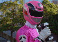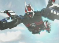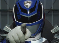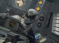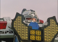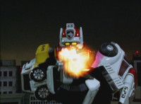 SWAT Megazord fires both Blasters forth, zoom in as we see Omega in the cockpit. |