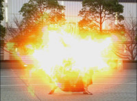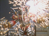 Cuts final shot before beams spreads across the city, vaporizing all of the buildings, leaving the Megazord standing amid fiery chaos. |