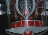 Close on Broodwing speaking, then a quick look at Omega before zooming out to show Delta Squad & Omegamax Megazords facing the A-Squad Megazord, which fires another forehead zap of electricity, bursting the two Megazords, and shaking up the cockpits of all six Rangers. Broodwing talks and points. |